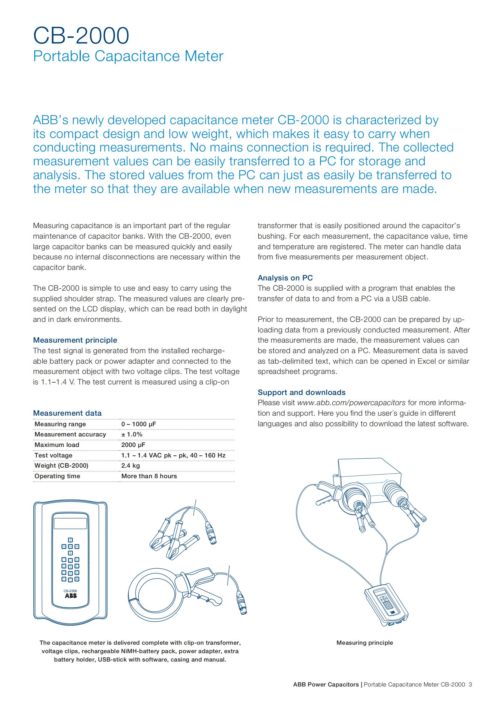 ABB便攜式電容測量計CB-2000具體測量參數